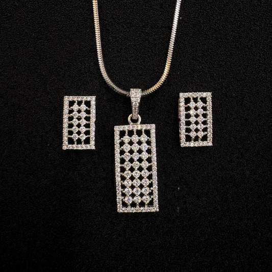 Pearl Necklace with Rectangle Polki Meena Tikdas and Jhumki