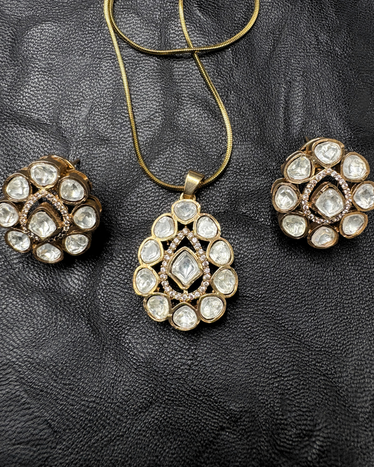 Beautiful Moissanite and AD Pendant Set