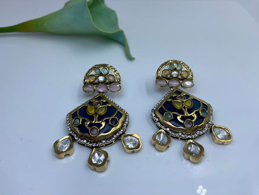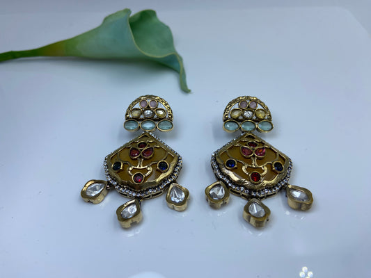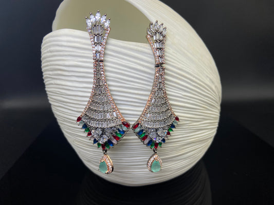 Rich Stone Studded Drop in Drop Danglers
