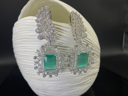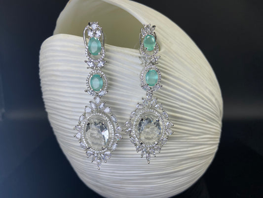Seafoam and Large White Stone Danglers