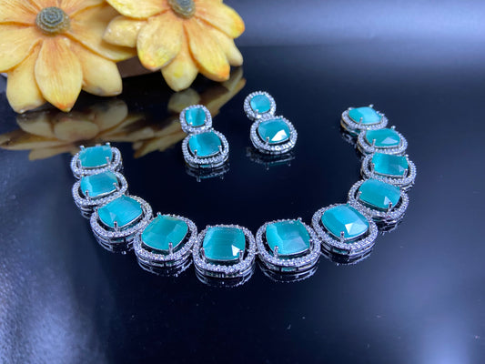 Nano Setting AD Necklace with Pink Green and Pearl Latkans