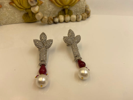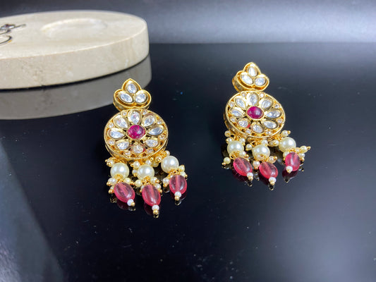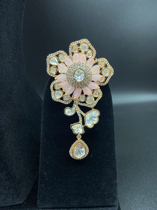Captivating Polki Flower with Elegant Pearl and Ruby Strings