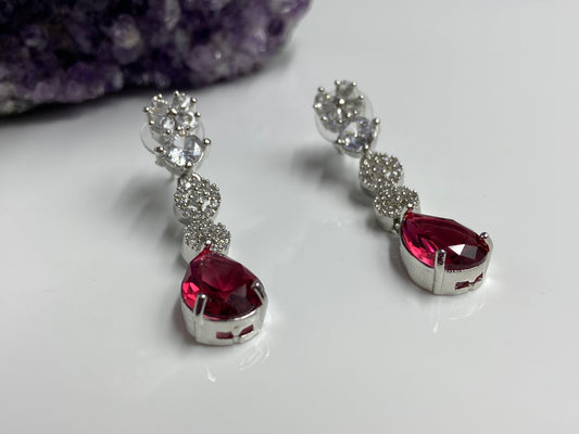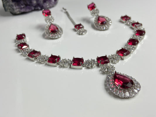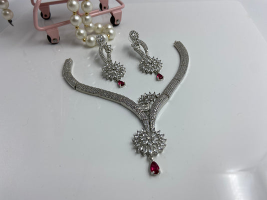 Elegant Necklace Set with AD Flower and Red Drop Latkan