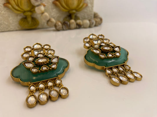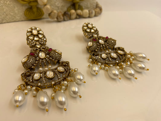Heavy Polki Studded Set with Pearl Latkans and Chandbali Earrings